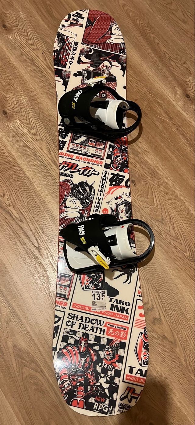 Detalles del productoTabla de snowboard con un diseño inspirado en el arte japonés y temática de videojuegos.