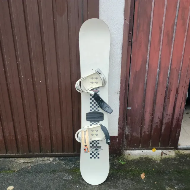 Detalles del productoTabla de snowboard blanca con un diseño moderno y fijaciones incluidas. Lista para la nieve.