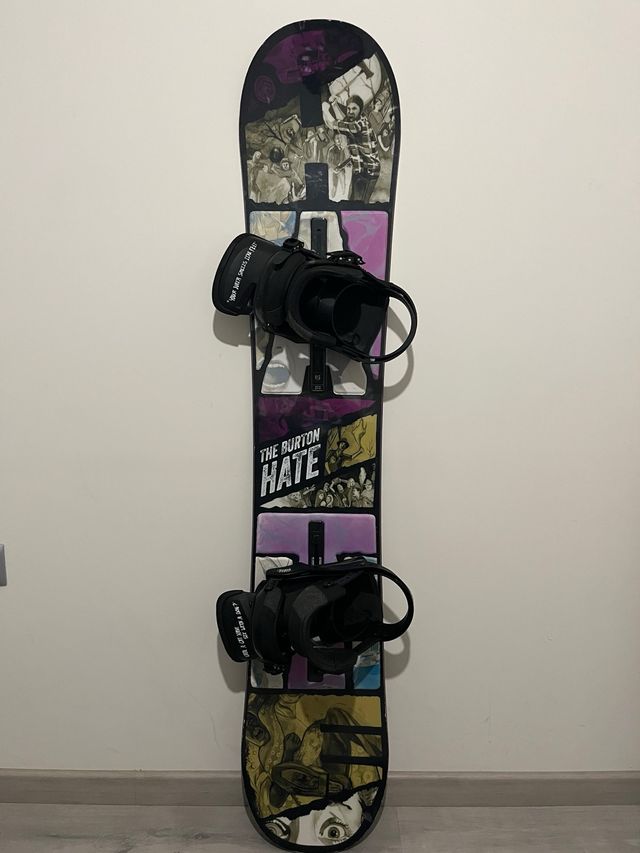 Tabla de snowboard Burton Hate con fijaciones incluidas. Diseño llamativo y único. - Tabla Burton Hate. - Fijaciones Burton. - Poco uso.