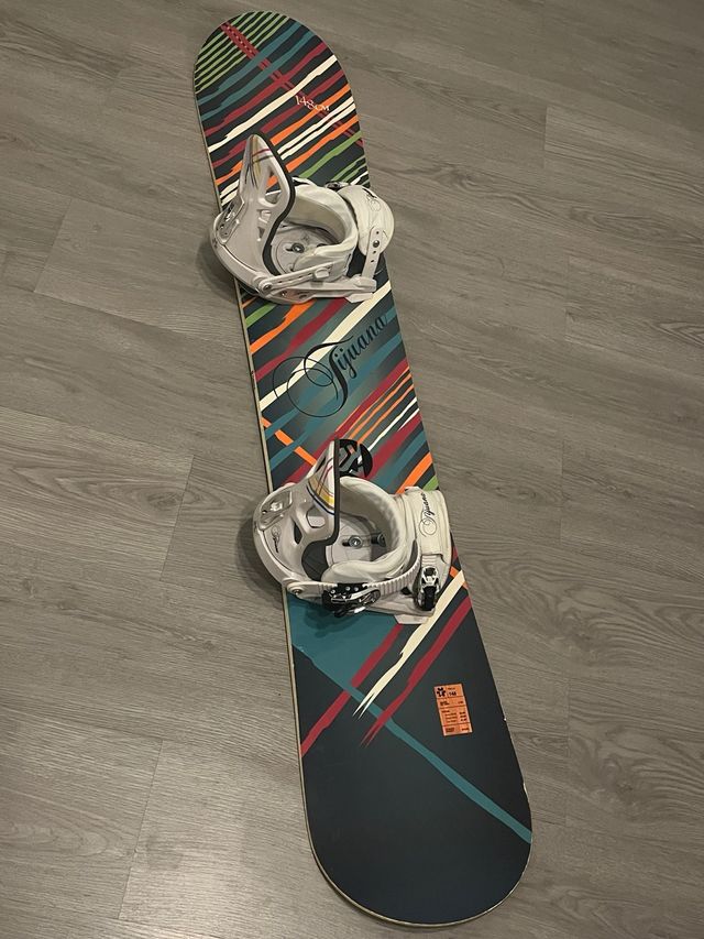 Tabla de snowboard con sujeciones y funda incluida. - Diseño colorido y moderno. - Sujeciones ajustables.