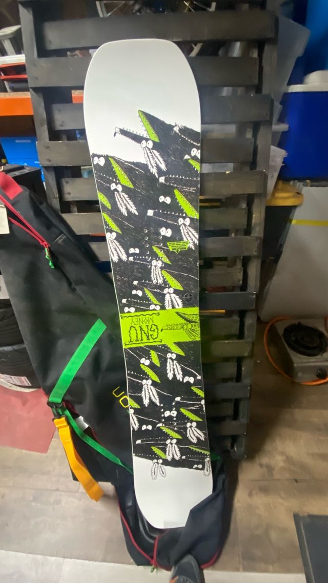 Detalles del productoTabla de snowboard GNU Money con un diseño llamativo.