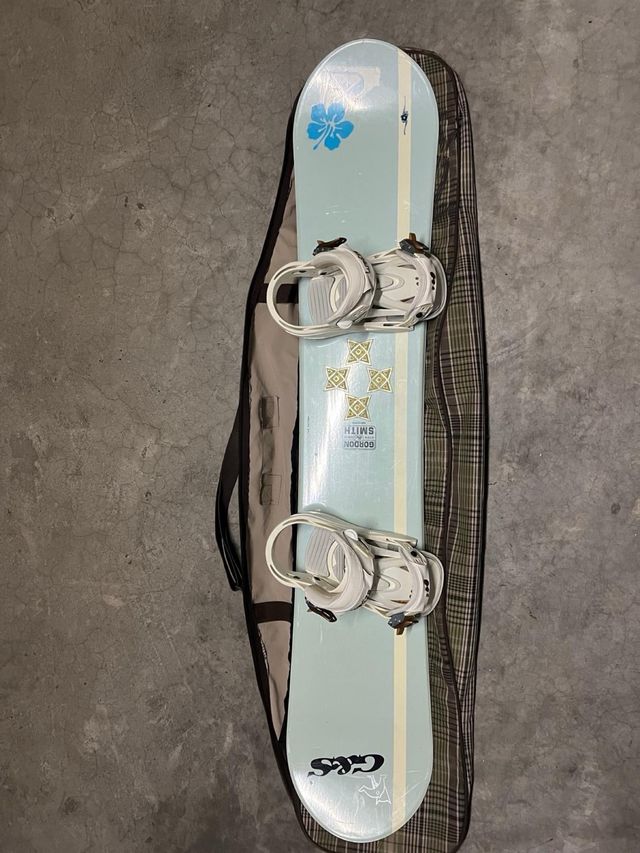 Detalles del productoTabla de snowboard Gordon Smith con fijaciones y funda incluida. Lista para la montaña.