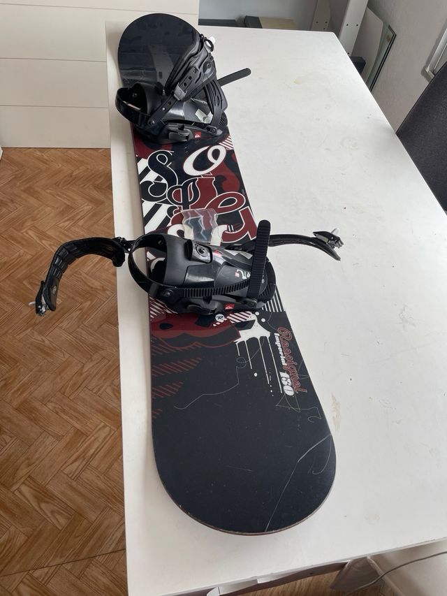 Como nueva. Usada 5 dias. Leves marcas de oxidación en los cantos (Necesario afilar). Sujetabotas Quicksilver. Perfecta para aprender o chavales jovenes.