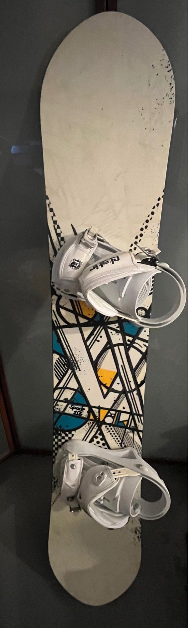 Detalles del productoTabla de snowboard Volkl con fijaciones incluidas. Diseño gráfico llamativo en la base.