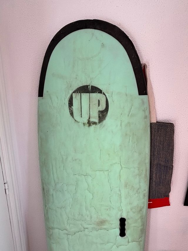 Detalles del productoTabla de surf usada de 6'4" y 44L de volumen. Presenta señales de uso por eso el precio, la tabla es de color verde claro soft.