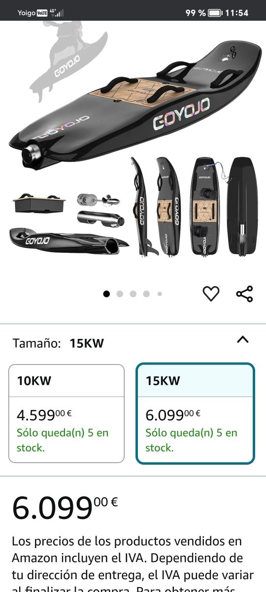 Detalles del productoTabla de surf eléctrica GOYOJO de 15KW. Diseño moderno y elegante.