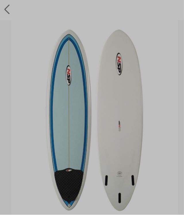 Tabla de surf NSP de 6.8 pies, usada. Está en buen estado. - Marca: NSP - Talla: 6.8 pies - Diseño: Color blanco con detalles azules.