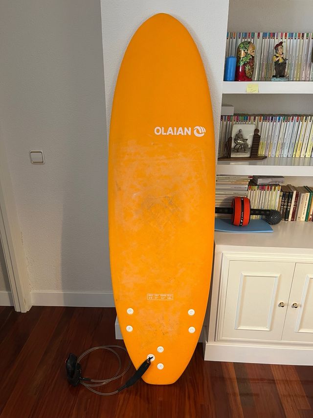 Tabla de surf de la marca Olaian, de color naranja. Practicamente nueva , tiene 4 baños.