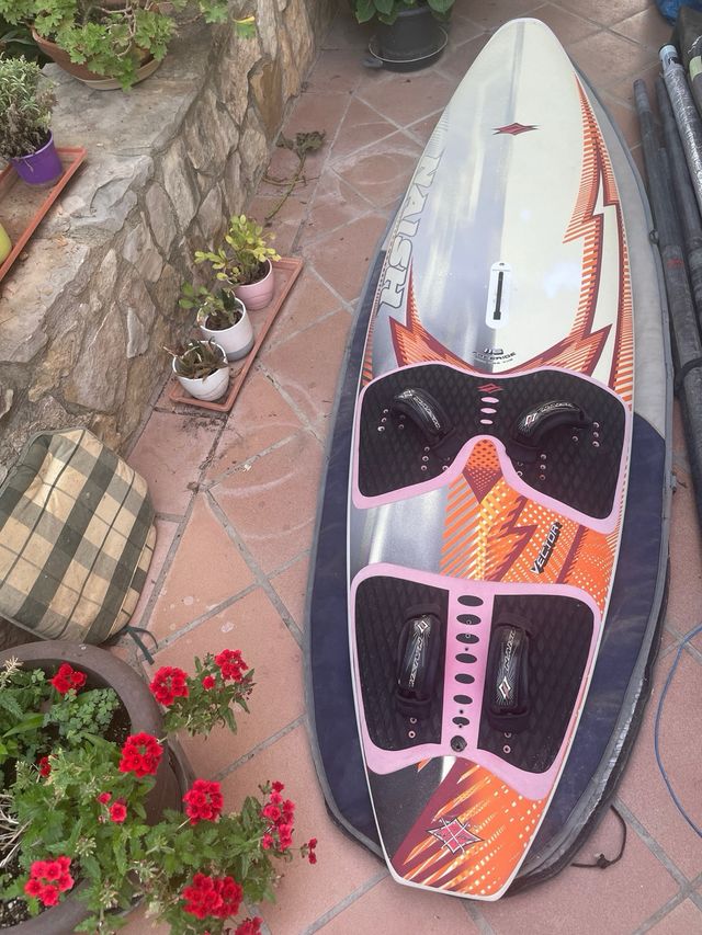 Detalles del productoTabla de windsurf Naish de 116 litros, ideal para freeride. Está en buen estado, con algunos signos de uso visibles en las imágenes.