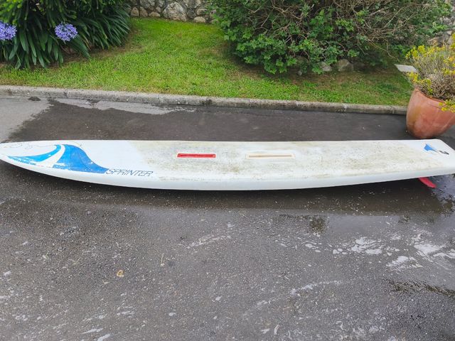Se vende tabla clasica de windsurf. Tabla marca Sprinter. Vela clasica de color amarillo de la marca Fa. Incluye tabla, botabara, vela y orza. Ideal para aprender a hacer windsurf o usar la tabla para hacer paddle surf (SUP). Está en El Astillero.