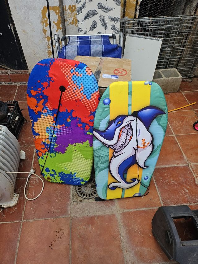 Detalles del productoDos tablas de bodyboard con diseños llamativos.