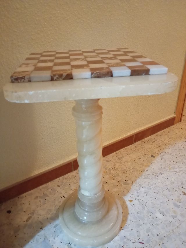 Detalles del productoTablero de ajedrez de mármol,apoyado en una base de alabastro torneada