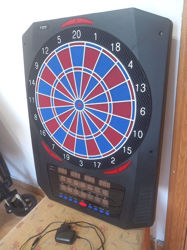 Detalles del productoTablero de dardos electronico marca koto modelo royal pro 580. Con funciones para jugar hasta 8 jugadores y con más de 580 variantes de juego. Se entrega con cargador y con total funcionalidad. Solo venta en persona. Medidas del producto