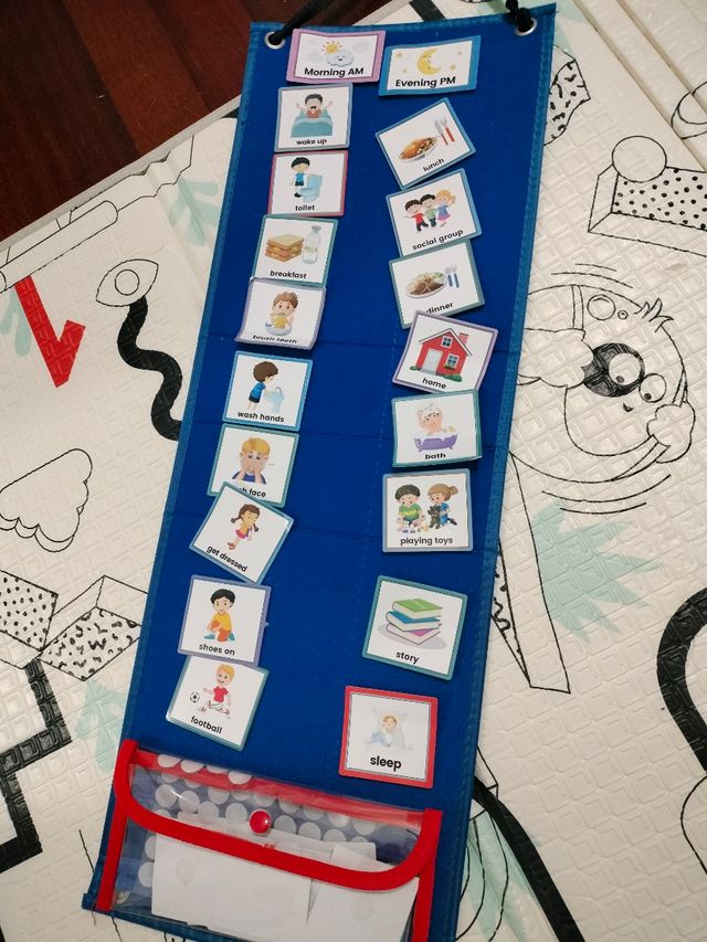 Detalles del productoTablero de actividades para niños, ideal para organizar las rutinas diarias e incluso para aprender vocabulario en inglés. Diseño colorido y educativo.