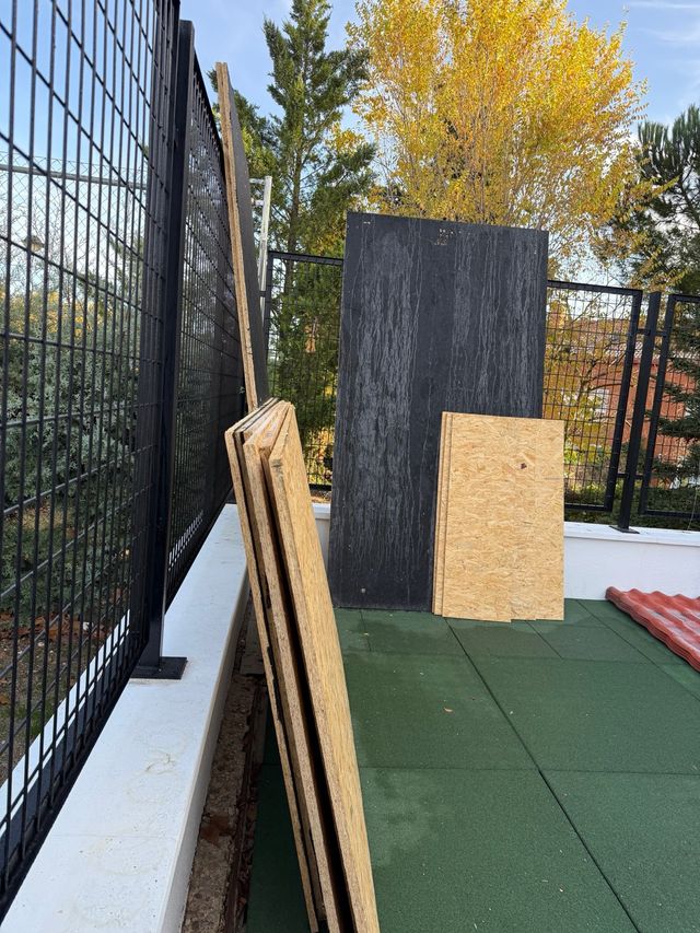 Los monte por una semana debajo de techo de tejas. Hay 10 placas, de los cuales 6 están pintadas de negro de un solo lado, con pintura sintética para madera.