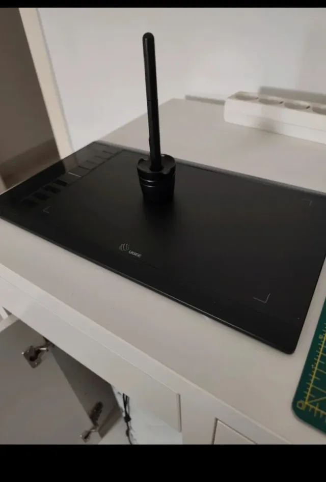 Tableta gráfica Ugee en color negro. - Superficie de dibujo amplia. - Diseño delgado y portátil. - Incluye soporte para lápiz.