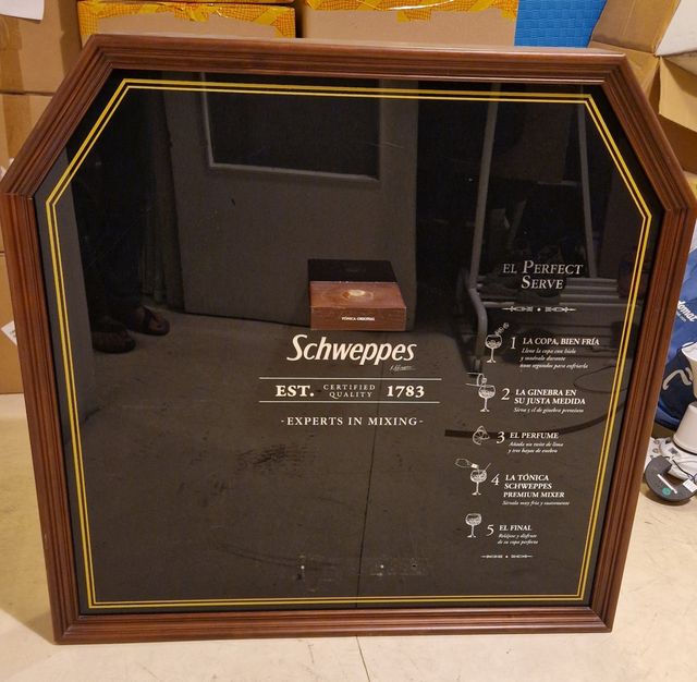 Buen estado · Schweppes · Negro y Marrón · Vidrio y Madera