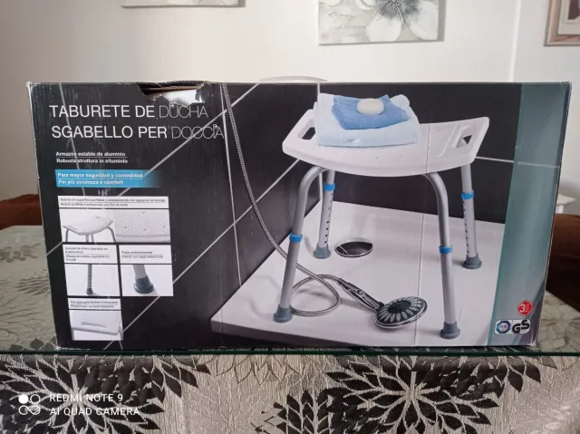 Taburete de ducha con estructura de aluminio. - Armazón estable. - Robusta estructura. - Para mayor seguridad y comodidad.