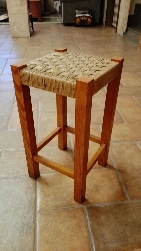 taburete de madera recién restaurado tanto la madera como la enea 30x30x55