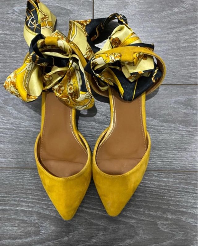 Tacones amarillos con lazo