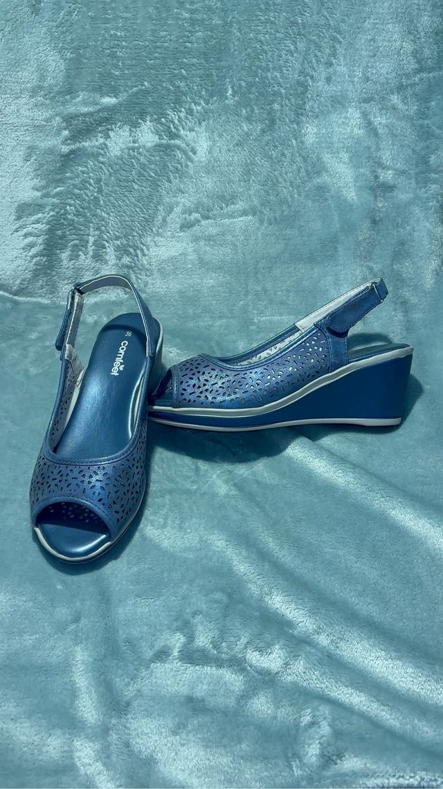 Tacones de cuña azules con diseño calado