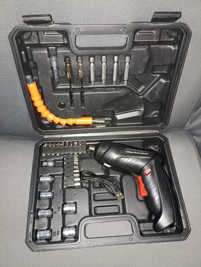 Taladro a bateria pequeño. Trae todo lo que sale en la foto.
