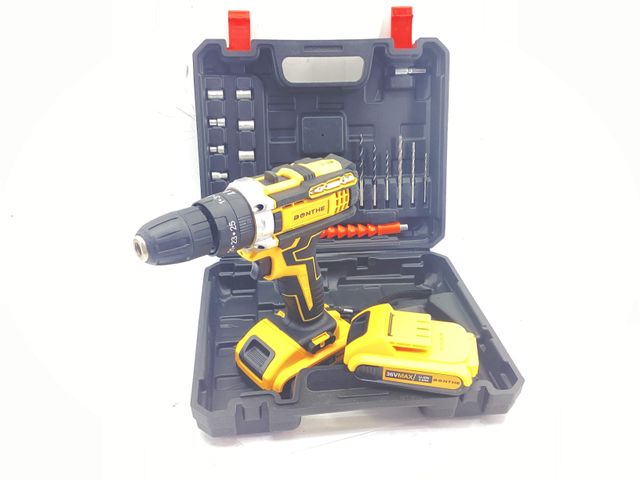 Detalles del productoEl precio mostrado es el de venta en nuestra tienda. El precio de este producto en nuestra página web puede ser diferente. Este artículo está disponible en nuestra tienda de Murcia. taladro a bateria bonthe taladro a batería de litio CC051_E566456_0 es un objeto que se ofrece en estado excelente. Todos nuestros productos cuentan con garantía de 3 años y un plazo de devolución de 14 días. Cargador: Si | Accesorios: Maletin | Percutor: No | Velocidad regulable: Si | Bateria: Si | Voltios de tension: 20 | Amperios: 0 | Empuñadura: No | Led aviso de carga: Si | Reversible: Si | Numero de baterias: 2 | Marca: Bonthe | Modelo: Ta