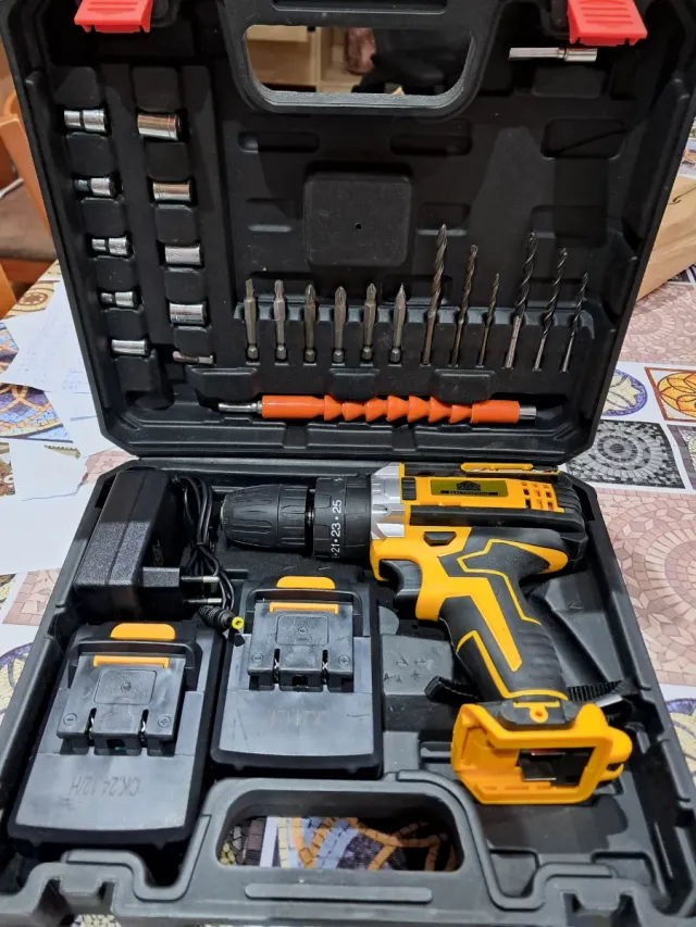 Detalles del productoTaladro atornillador a batería de 21V, ideal para trabajos en el hogar Incluye maletín con accesorios.