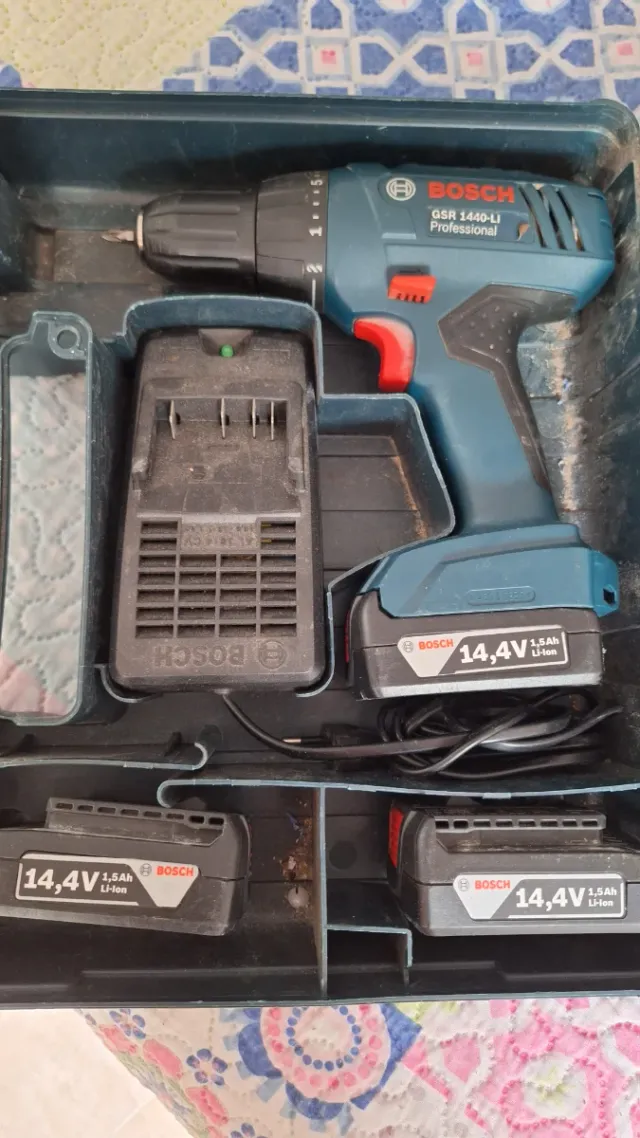 Taladro atornillador Bosch - Incluye cargador. - tres baterías de 14,4V 1,5Ah Li-Ion. - Maletín de transporte.