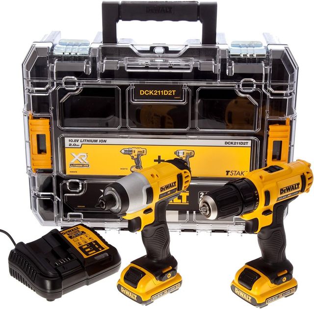 Detalles del productoDEWALT DCK211D2T-QW - KIT Taladro Atornillador (DCD710) XR 12V + Atornillador Impacto (DCF815) XR 12V + Organizador TSTAK V, con 2 baterías Litio 2,0Ah y cargador,