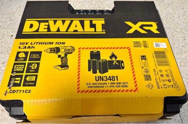 Detalles del productoTaladro atornillador DeWalt XR con batería de litio.