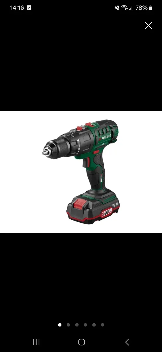Detalles del productoTaladro atornillador Parkside de 20V, ideal para tus proyectos.