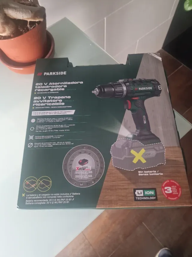Taladro atornillador recargable Parkside de 20V. - Sin batería ni cargador. - Mandril de 13 mm. - Par máximo de 45 Nm.