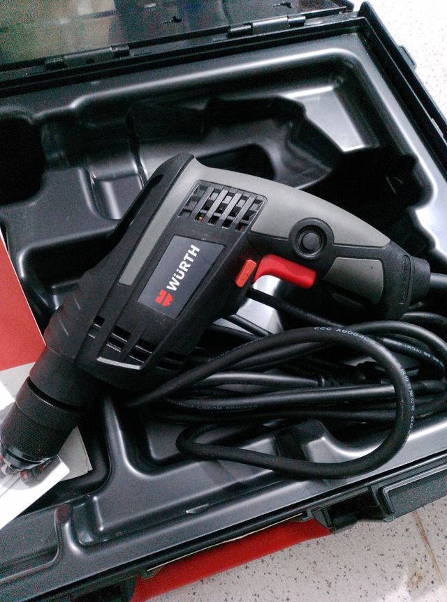 Detalles del productoTaladro atornillador Würth BM-E Compact en su maletín.