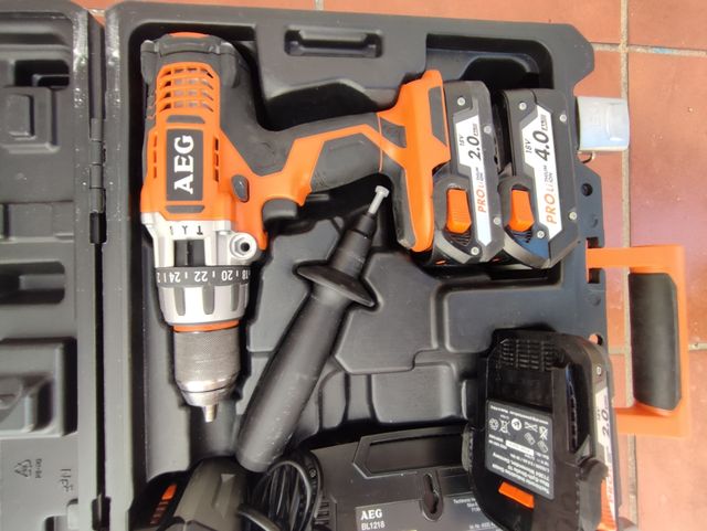 Taladro industrial AEG BSB seminuevo 2 bat 20v 4A Li 2 bat 20v 2A Li Las baterías están prácticamente nuevas Cargador rápido especial Litio