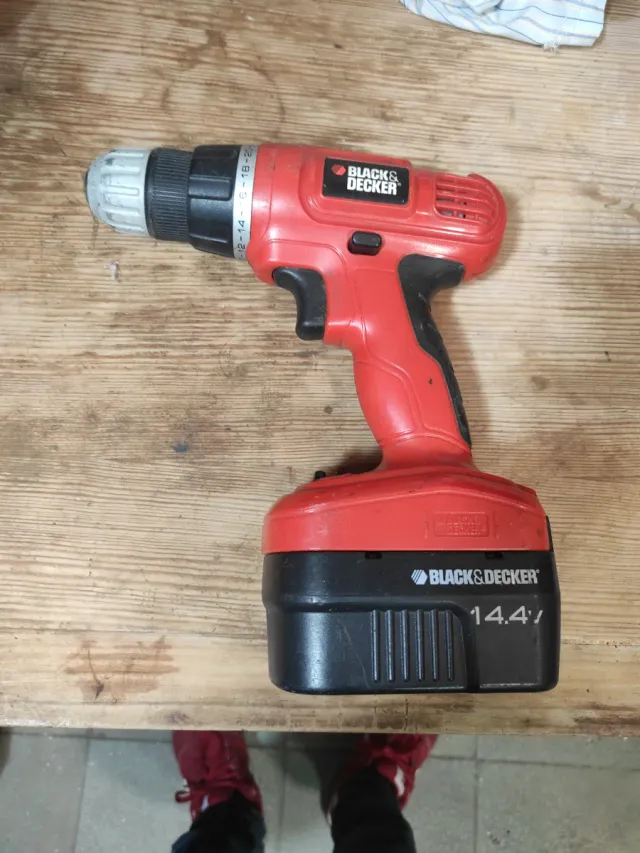Taladro inalámbrico Black & Decker en color rojo y negro. - Voltaje de la batería: 14.4V. - Marca: Black & Decker. Falta cargador de ai si precio