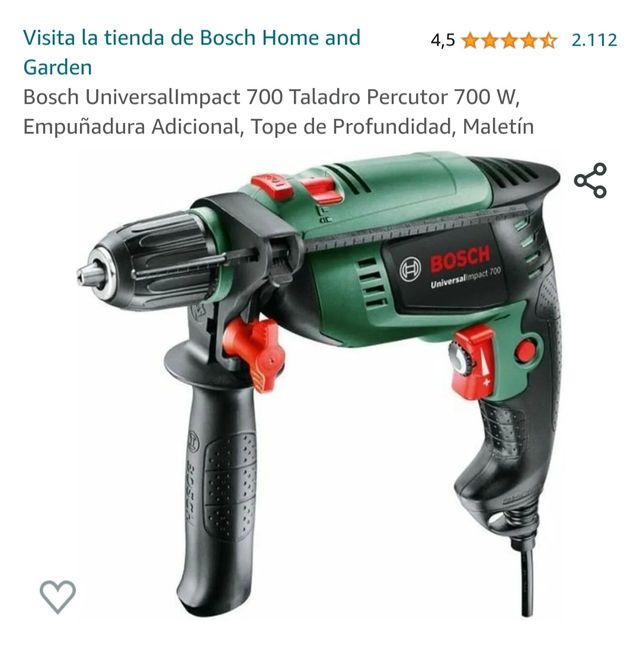 Detalles del productoTaladro Bosch, modelo Universal Impact 700, nuevo a estrenar en su maletín precintado, varias unidades, precio por unidad, zona Alcobendas, no negociable , preferible entrega en mano, NO creo que los envíe, cualquier duda preguntar