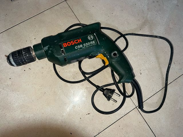 Taladro eléctrico Bosch CSB 550 RE. - Color verde. - Mango auxiliar. - Portabrocas. - Cable de alimentación.