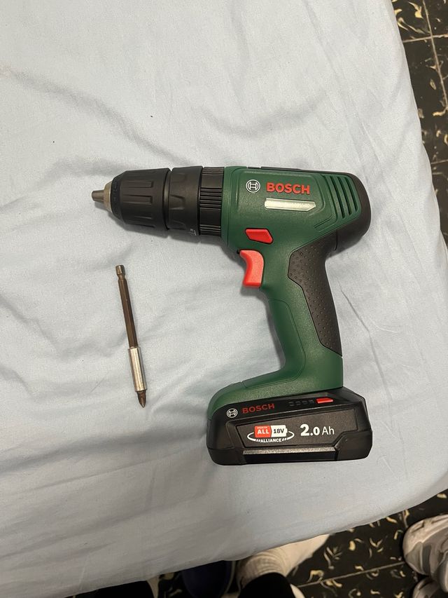 Taladro percutor inalámbrico Bosch EasyImpact 18V-40. - Color verde y negro. - Batería de 18V y 2.0 Ah incluida. - Incluye punta de atornillar.