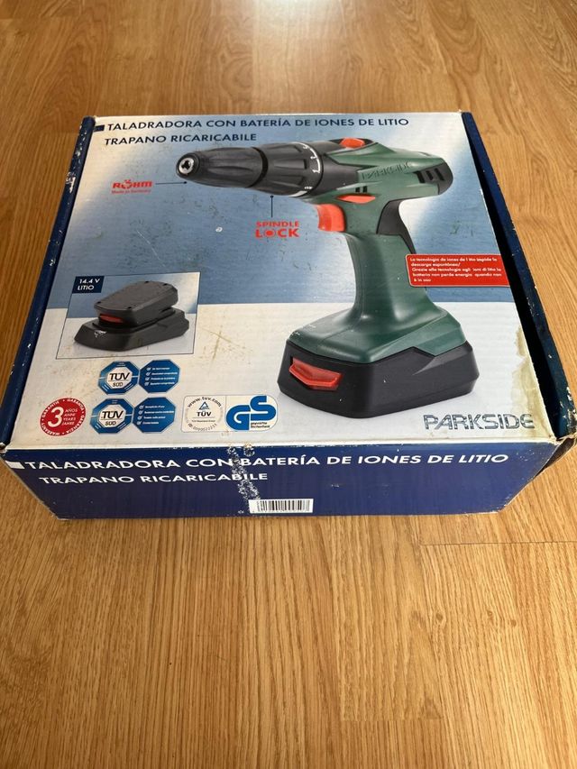 Detalles del productoTaladro percutor Parkside con batería de iones de litio.