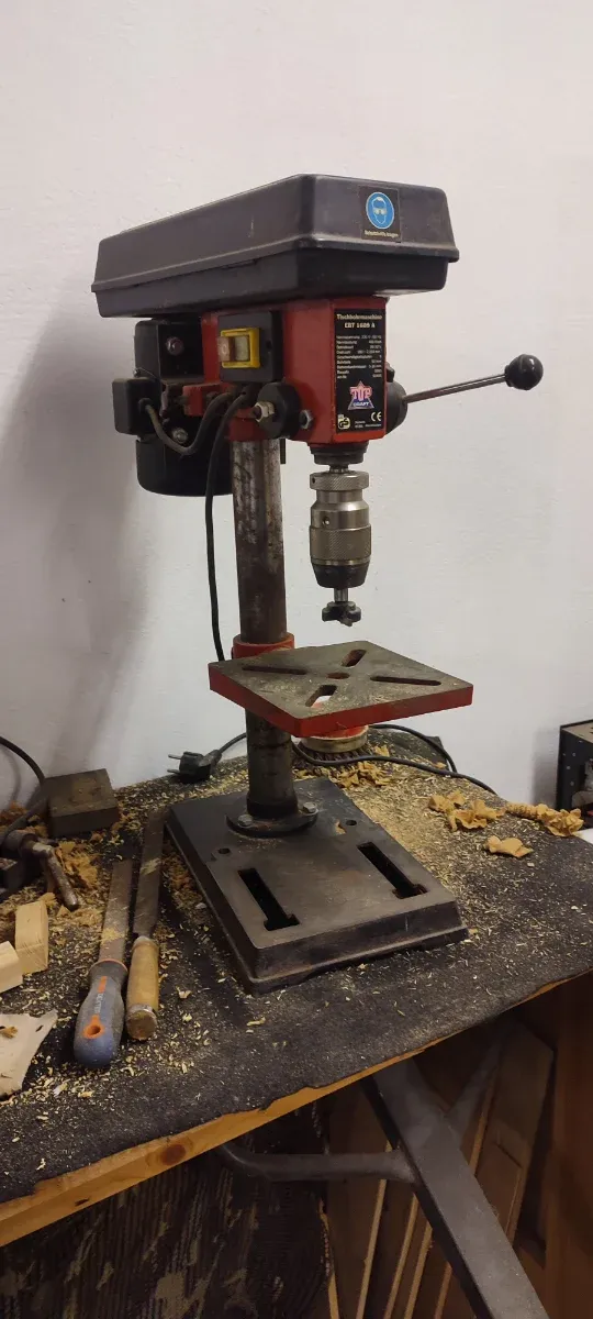 Detalles del productoTaladro de columna para trabajos de bricolaje y carpintería. Ideal para realizar agujeros precisos en madera y otros materiales.