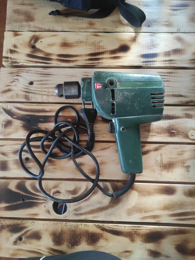 Detalles del productoTaladro eléctrico de color verde. Ideal para trabajos en casa o en el taller.