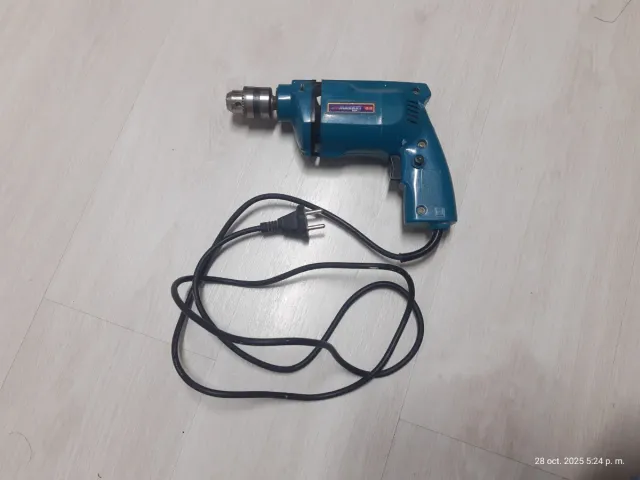 Taladro eléctrico con cable de alimentación. Su diseño es ergonómico y fácil de manejar. - Color azul. - Cable de alimentación incluido.