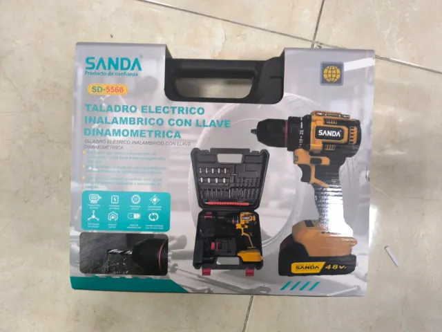 Taladro eléctrico inalámbrico SANDA con llave dinamométrica. - Modelo SD-5566. - Incluye maletín con accesorios. - Batería de 48V.