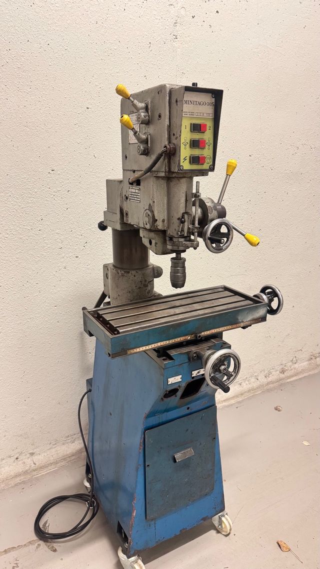 Detalles del productoTaladro fresador Minitago 30S, en color azul. Ideal para trabajos de mecanizado.