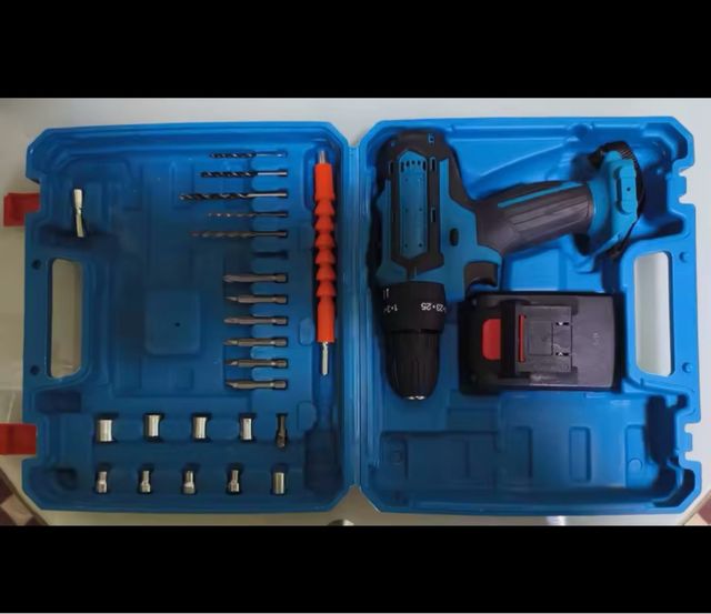 Taladro de impacto inalámbrico con batería de iones de litio. - Incluye maletín. - Incluye brocas y puntas. - Mango ergonómico.