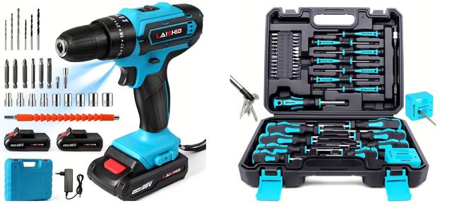 Taladro Inalámbrico y Set Destornilladores AZUL