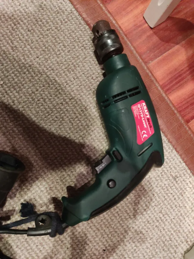 Taladro KRAFT TECH con cable. Modelo ID13YD-Laser. - Color verde. - Portabrocas. - Interruptor de gatillo. - Percutor. Regalo alargador.