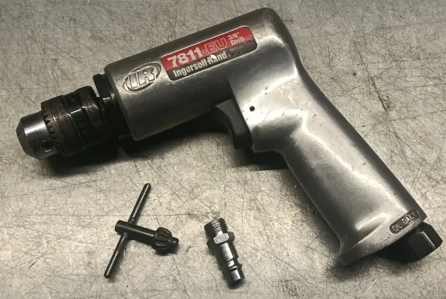 Detalles del productoTaladro neumático Ingersoll Rand de 3/8". Incluye llave para el portabrocas y un conector rápido.