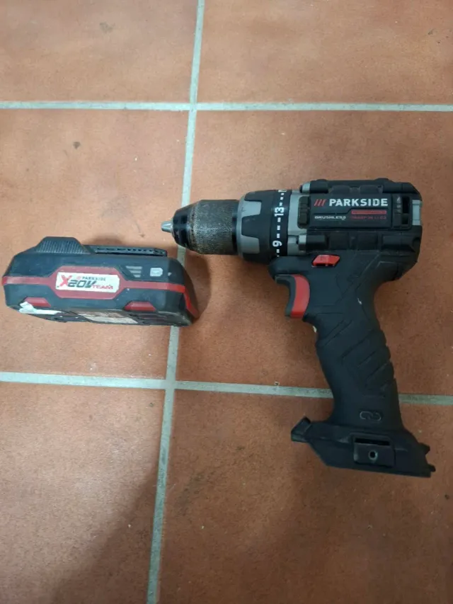 Taladro percutor Parkside 20V con motor Brushless. - Modelo: PABSP 20V Li-C3. - Incluye batería de 20V.